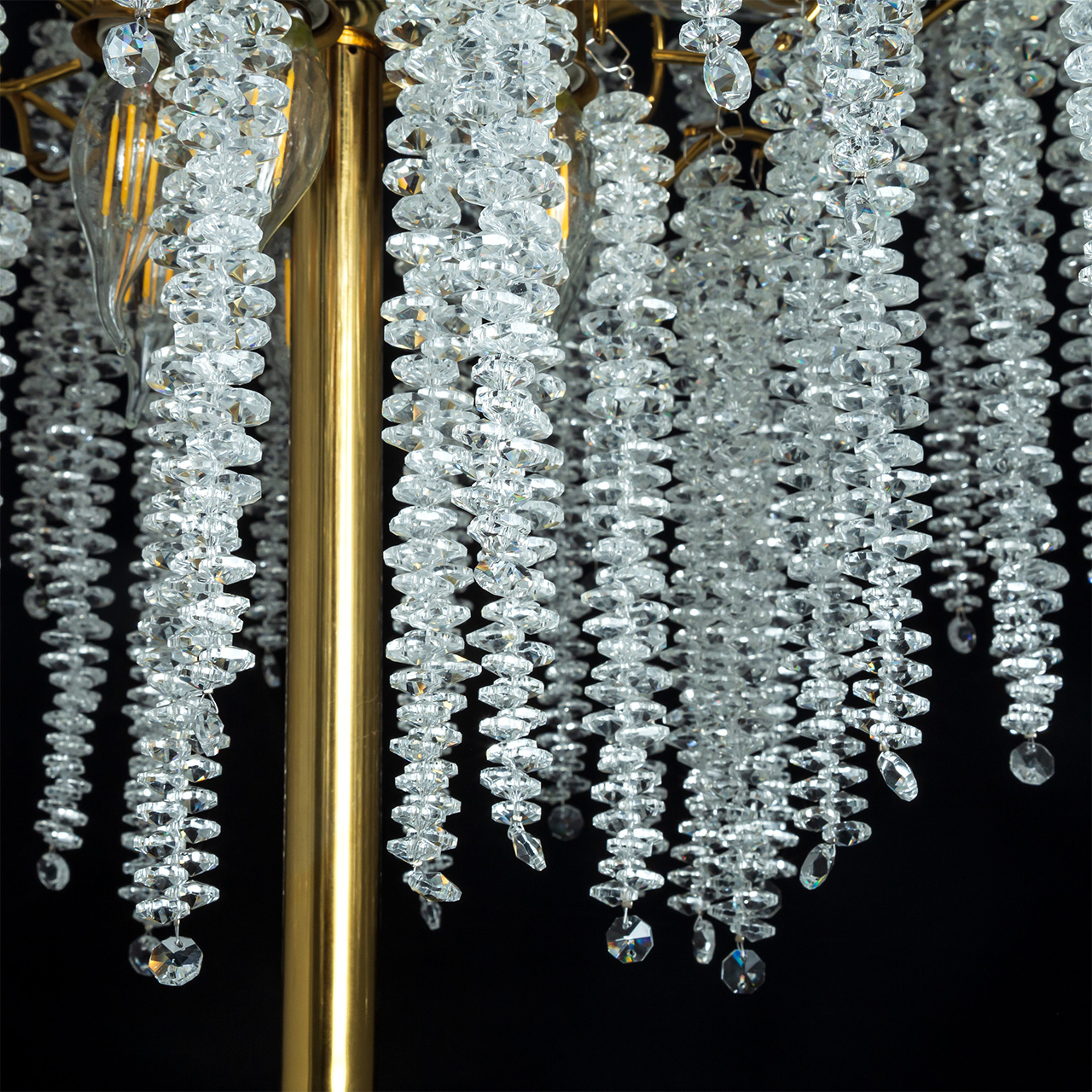 درخشش گرم و جذاب 12 شاخه کریستالی آبشاری آن را که تداعی کننده برگ های سبز بهاری است را تماشا کنید که با ظرافت از شاخه ها آویزان شدهاند و رقصی مسحورکننده از نور و سایهها را در سراسر اتاقتان پخش میکنند.
