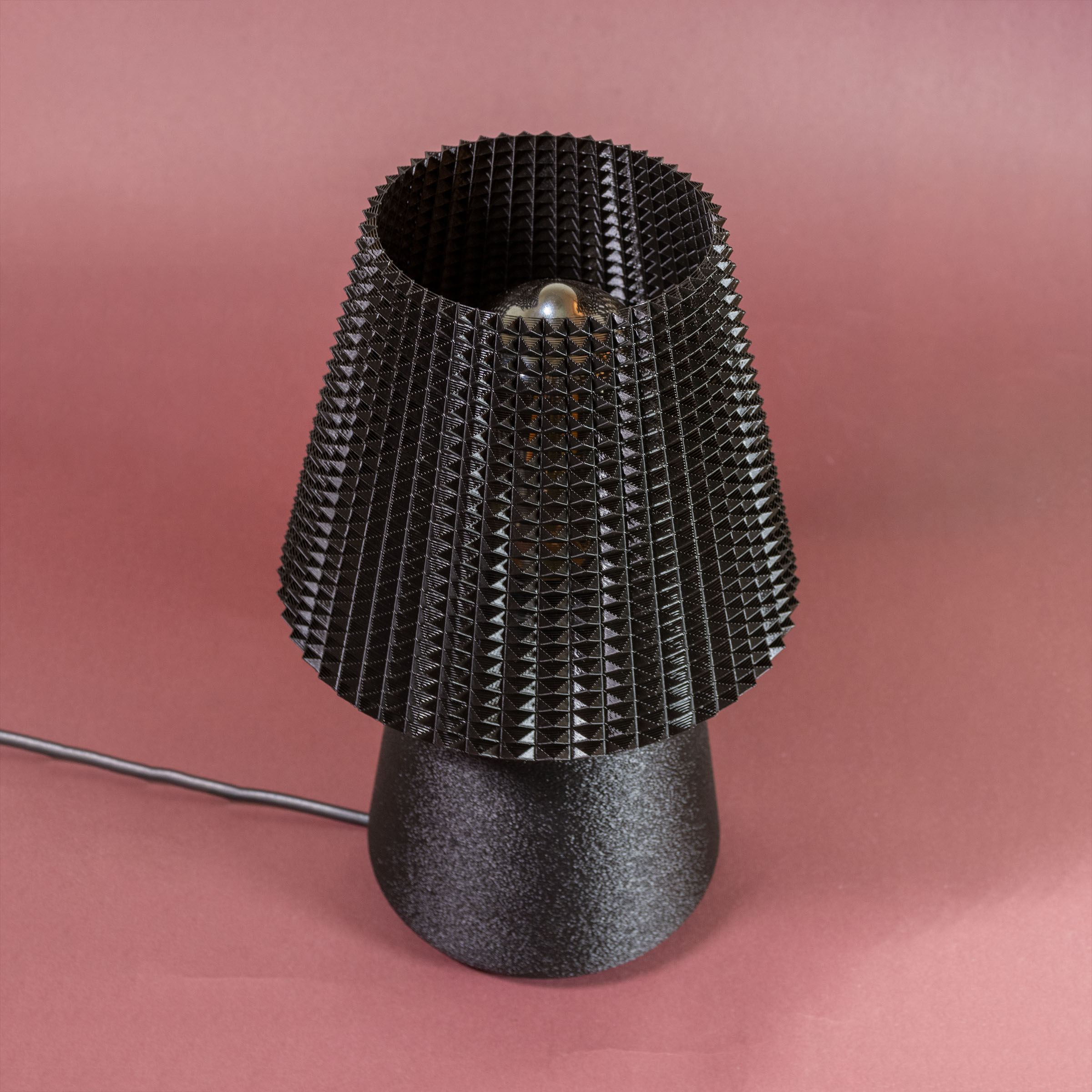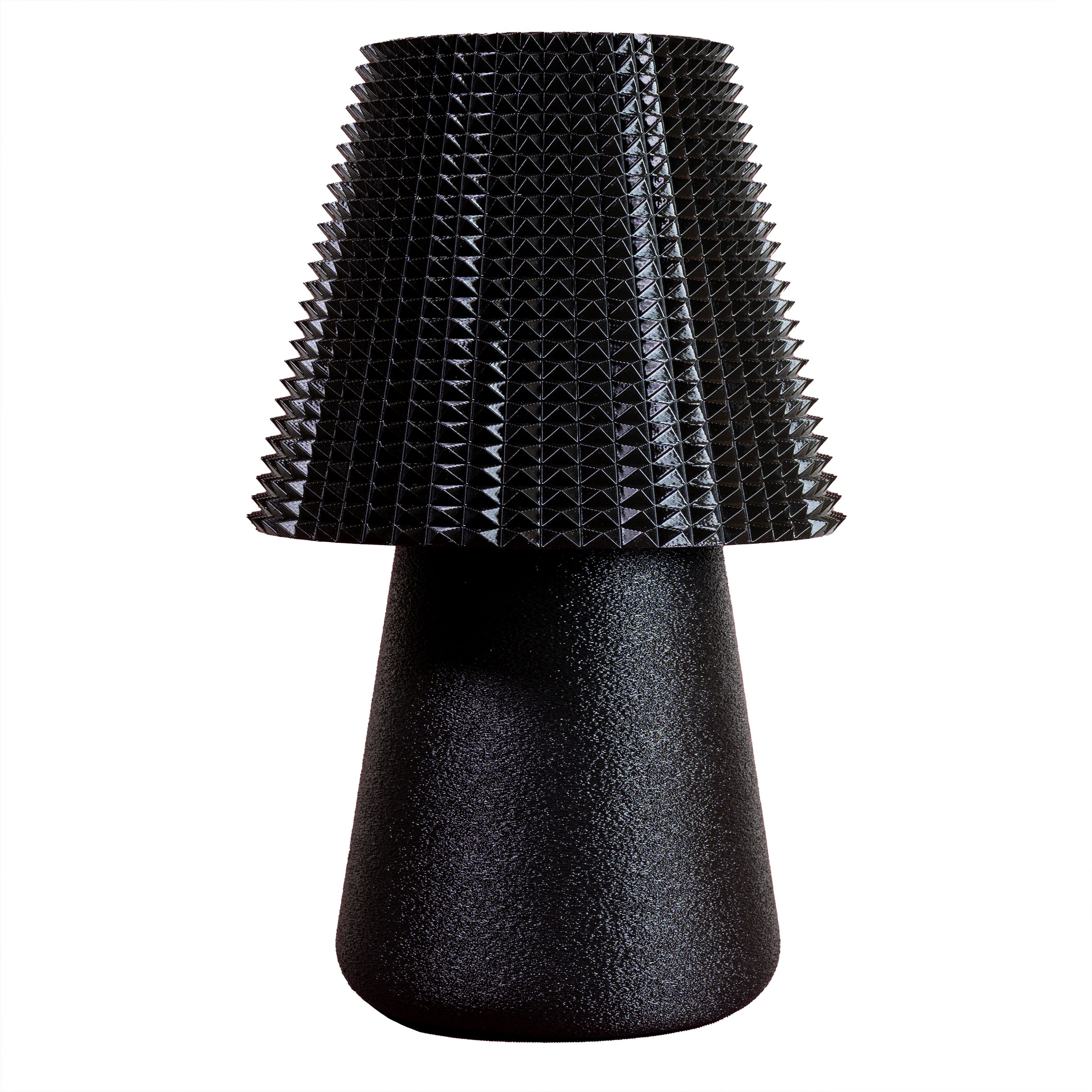 بدنه‌ی مینیمال با رنگ مشکی، بافت خاص و فرم یکپارچه، حس قدرت و ظرافت را هم‌زمان منتقل می‌کند. این آباژور برای کسانی طراحی شده که می‌خواهند سبک زندگی خود را با جزئیاتی لوکس، آینده‌نگر و متفاوت تعریف کنند.