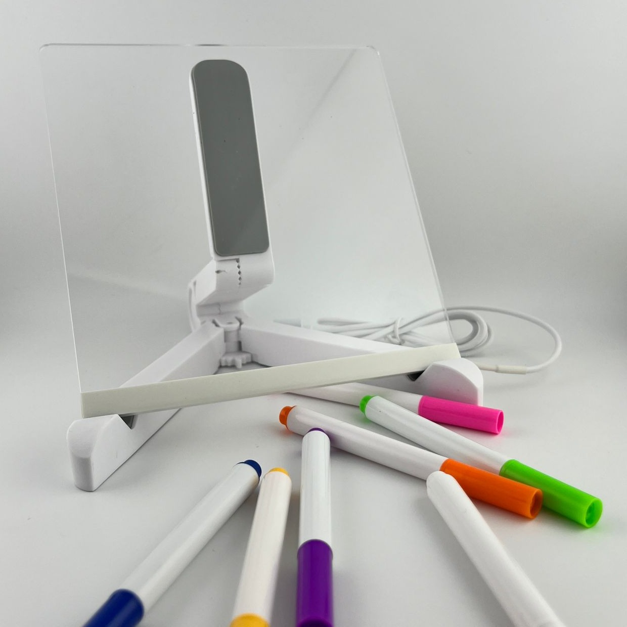 تخته نوری LED مدل JS-01 یک وسیلهی خلاقانه و مدرن برای یادداشت، طراحی و دکور است. صفحهی شفاف از جنس آکریلیک روی پایهای با نور LED قرار گرفته و هر چیزی که روی آن با ماژیک مخصوص نوشته یا نقاشی شود، پس از روشن شدن پایه، بهصورت نورانی و چشمگیر نمایش داده میشود.این محصول علاوه بر کاربرد روزمره مثل نوشتن یادداشتها، لیست کارها یا پیامهای رومیزی، گزینهای عالی برای هدیه دادن در مناسبتهای مختلف (تولد، روز پدر و مادر، ولنتاین، کریسمس، جشن فارغالتحصیلی و …) است. همچنین میتوان از آن به عنوان وسیلهی دکوری روی میز کار، اتاق خواب یا حتی کافیشاپ و فروشگاهها برای نوشتن پیامهای تبلیغاتی و جملات خاص استفاده کرد.استفاده از این تخته بسیار ساده است: با ماژیک مخصوص روی سطح شفاف مینویسید، در صورت نیاز نوشته را پاک میکنید و دوباره مینویسید. نور LED پایه جلوهای خاص و چشمگیر به متن یا نقاشی شما میدهد و آن را به یک تابلو مدرن و متفاوت تبدیل میکند.