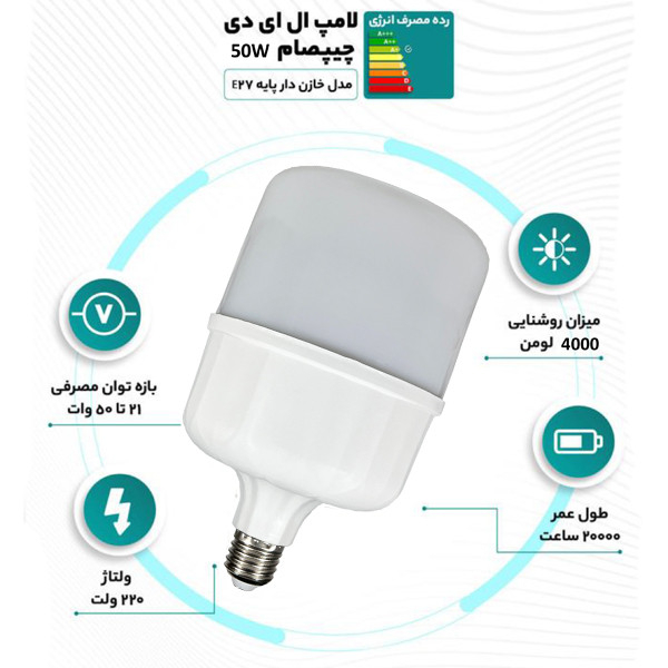 لامپ ال ای دی استوانه ای 50 وات چیپصام یکی از بهترین و به روزترین راه حل های روشنایی است که به شما کمک می کند تا در مناطق مختلف خانه، محل کار، اتاق های کوچک و بزرگ و … از روشنایی بهتری برخوردار شوید. با ابعاد 12x12x21 سانتیمتر و وزن 210 گرم، این لامپ با ولتاژ 220 ولت و توان 50 وات در فرکانس 50/60 هرتز عمل می کند. این لامپ LED حبابی با جنس محافظ پلاستیکی ABS ساخته شده است نوع پایه آن E27 است و با طول عمر 25,000 ساعت و میزان روشنایی 4000 لومن، قابلیت روشنایی اتاق شما را بهبود می بخشد. یکی از مزایای این لامپ LED حبابی، استفاده از چیپ دارای خازن آنتی شوک و فیوز است که هم از چشمک زدن یا سو سو کردن نور لامپ جلوگیری می کند و هم مانع از اتصالی برق منزل می شود و دارای 50 عدد ال ای دی 1 وات میباشد . علاوه بر این، با سیم نسوز بکار رفته در این لامپ، می توانید از سوختگی ناشی از اتصالات برق جلوگیری کنید. با زاویه نوردهی 320 درجه، این لامپ می تواند در مناطق مختلف خانه شما مانند اتاق خواب، نشیمن، اتاق کار، آشپزخانه و حتی حمام مورد استفاده قرار گیرد. در نهایت این لامپ LED با ابعاد و وزن مناسب، زاویه نوردهی وسیع، رده مصرف انرژی بسیار پایین و بازه توان مصرفی مناسب، به عنوان یک گزینه مناسب برای روشنایی داخلی خانه شما پیشنهاد می شود. با محافظت از شما در برابر سوختگی ناشی از اتصالات برق و جلوگیری از چشمک زدن یا سو سو کردن نورلامپ، این محصول در سطح امنیت و کارایی بسیار بالایی قرار دارد. به علاوه، مصرف انرژی کم این لامپ، به شما کمک می کند تا در حفظ محیط زیست و کاهش هزینه های خانه خود موفق باشید. با توجه به تمامی ویژگی های منحصر به فرد این لامپ LED حبابی، انتخاب آن به عنوان یک راه حل روشنایی در خانه شما، تصمیمی هوشمندانه و اقتصادی خواهد بود.